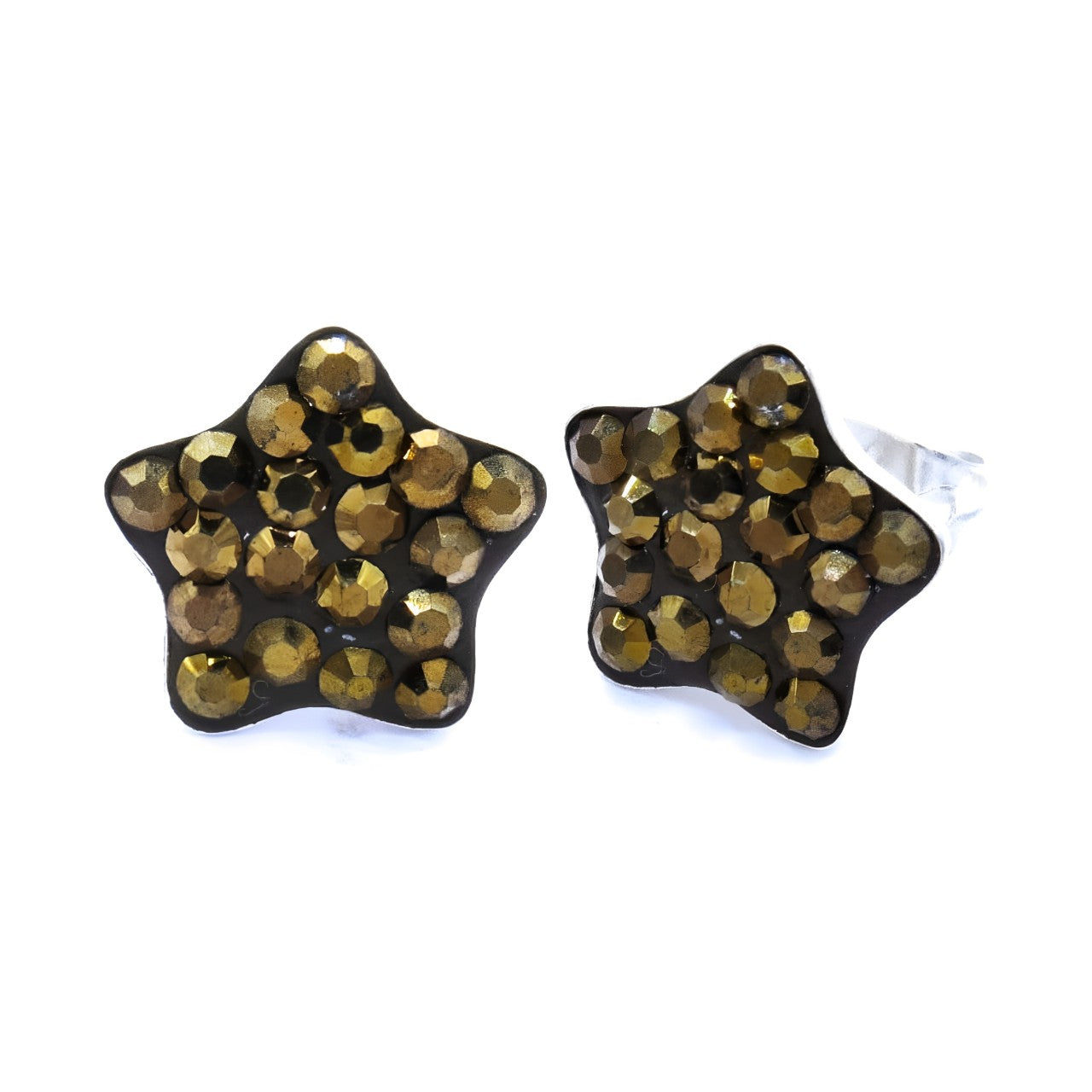 Estos broqueles de estrella, elaborados en cristales de tonos ámbar, capturan la luz de manera sublime, proyectando elegancia y un brillo sutil. Perfectos para iluminar cualquier momento con un toque encantador.