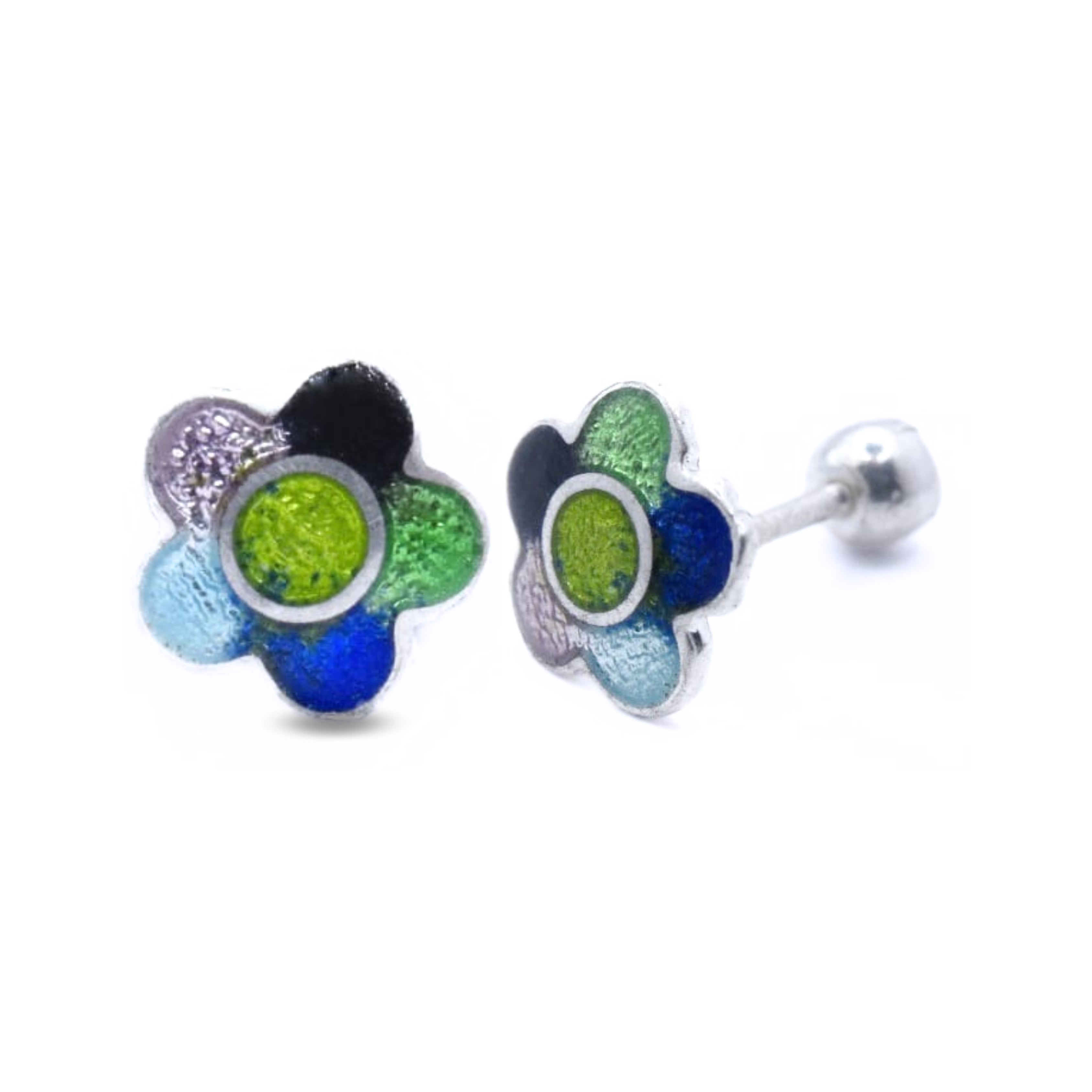 Broquel infantil Plata Primera Ley 0.925 Jina Flor Esmalte - Colección Jina – Aretes