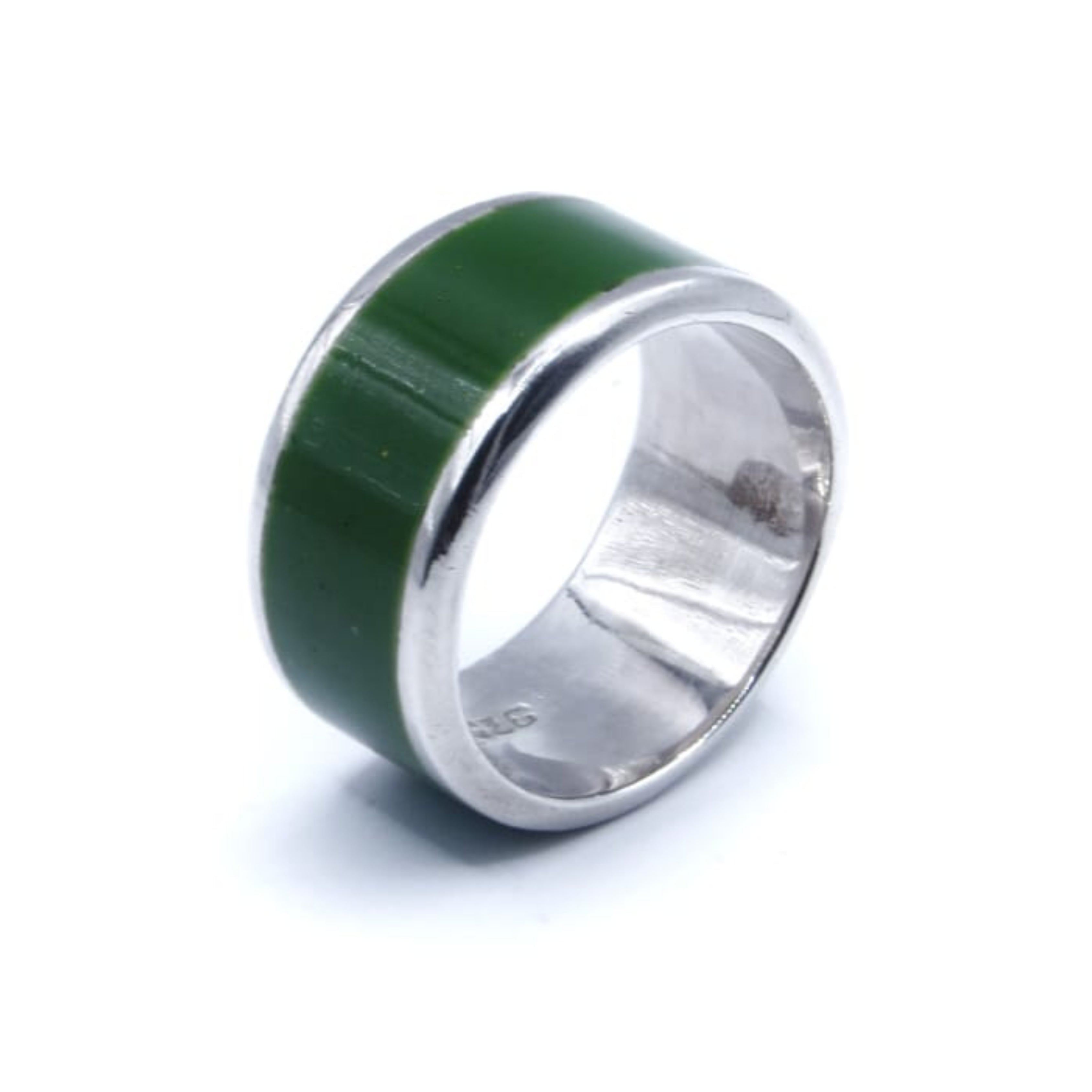 Anillo #8 para caballero Plata Primera Ley 0.925 Cassian Resina verde - Colección Cassian - Anillos