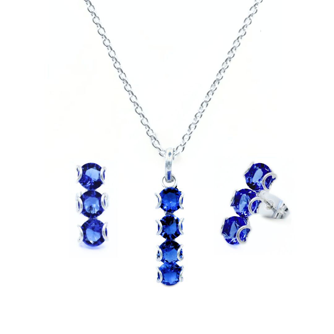 Este set en Plata Primera Ley .925, con zirconias en un azul profundo, crea un equilibrio perfecto entre elegancia y presencia. Cada destello aporta luz con sutileza, elevando cualquier look sin esfuerzo.