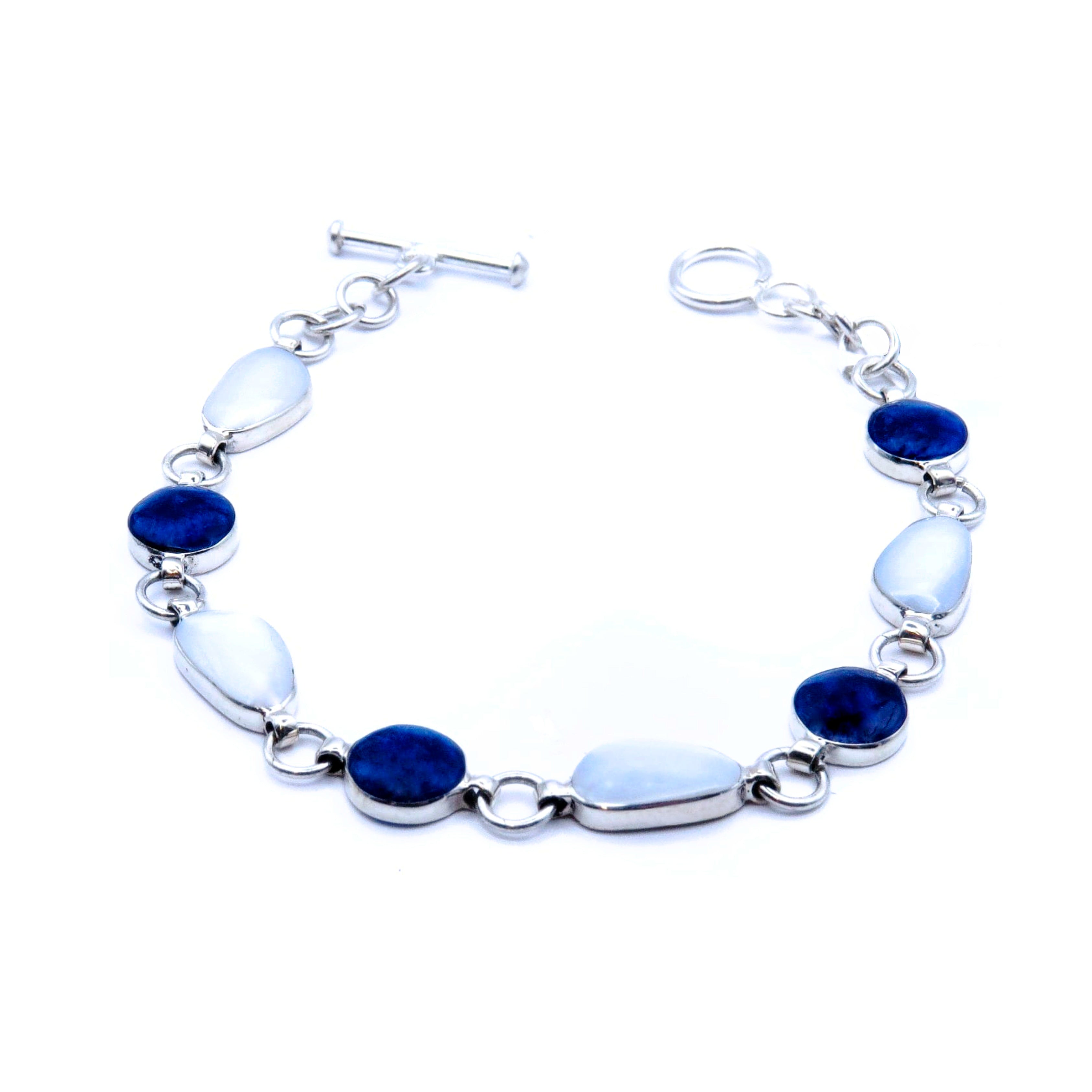 Pulsera con broche tipo palanca, Plata Primera Ley 0.925 Tsuyu/Concha/Resina azul