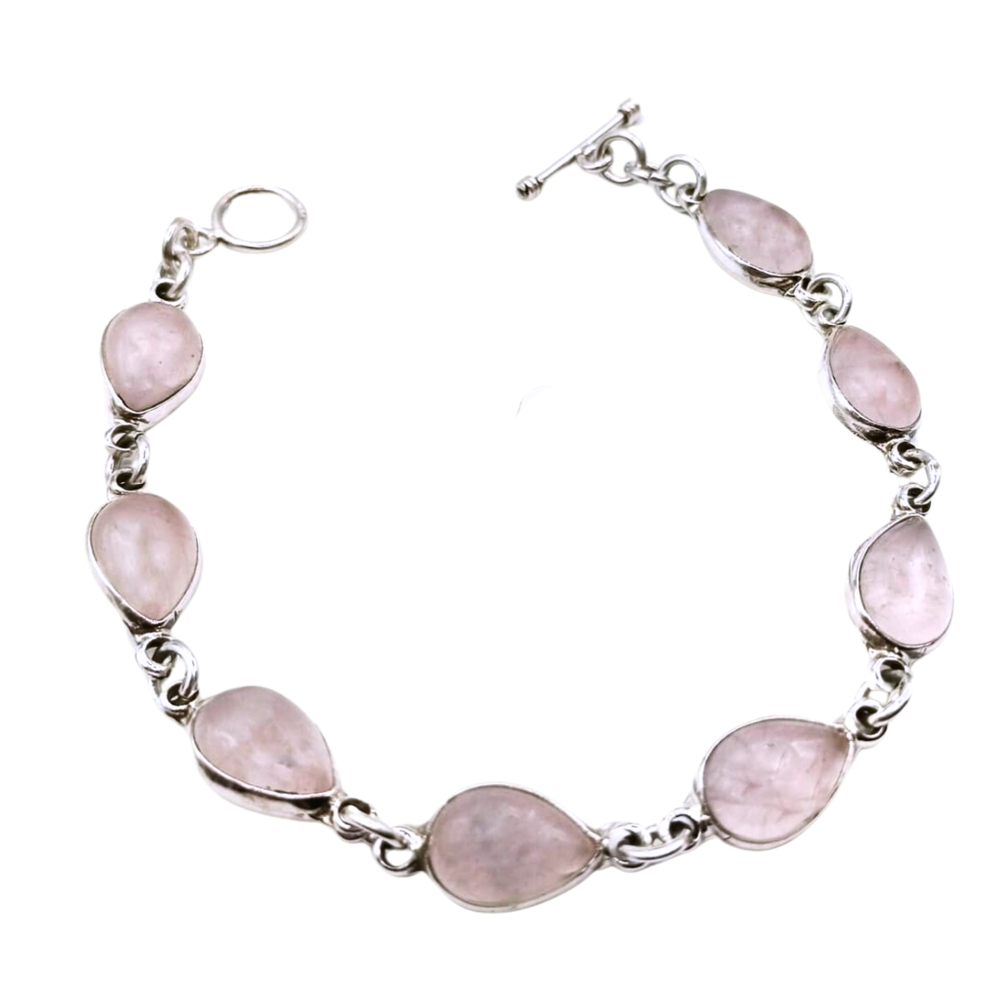 Pulsera broche tipo palanca Plata Primera Ley 0.925 Gotta Cuarzo rosa - Colección Gotta – Pulsera