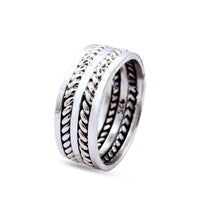 Equilibrio perfecto entre lo clásico y lo moderno. Este anillo de plata, con trenzado central y bordes lisos, es una pieza versátil que transmite elegancia y fuerza en un solo diseño.