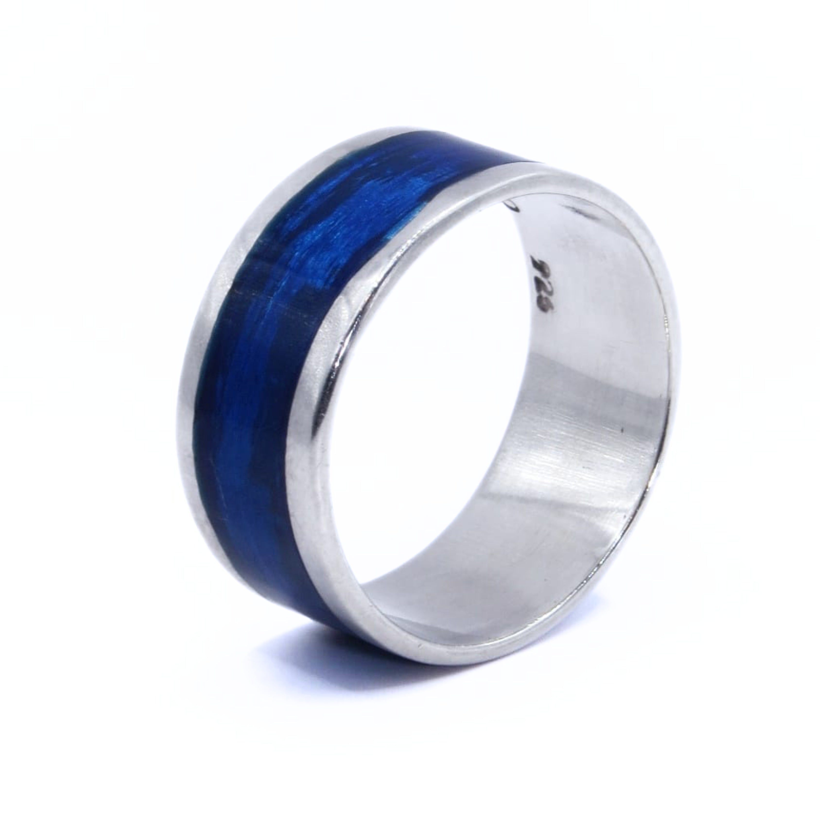 Anillo #8 para caballero Plata Primera Ley 0.925 Cassian Resina azul zafiro. - Talla 8 / Talla 10
