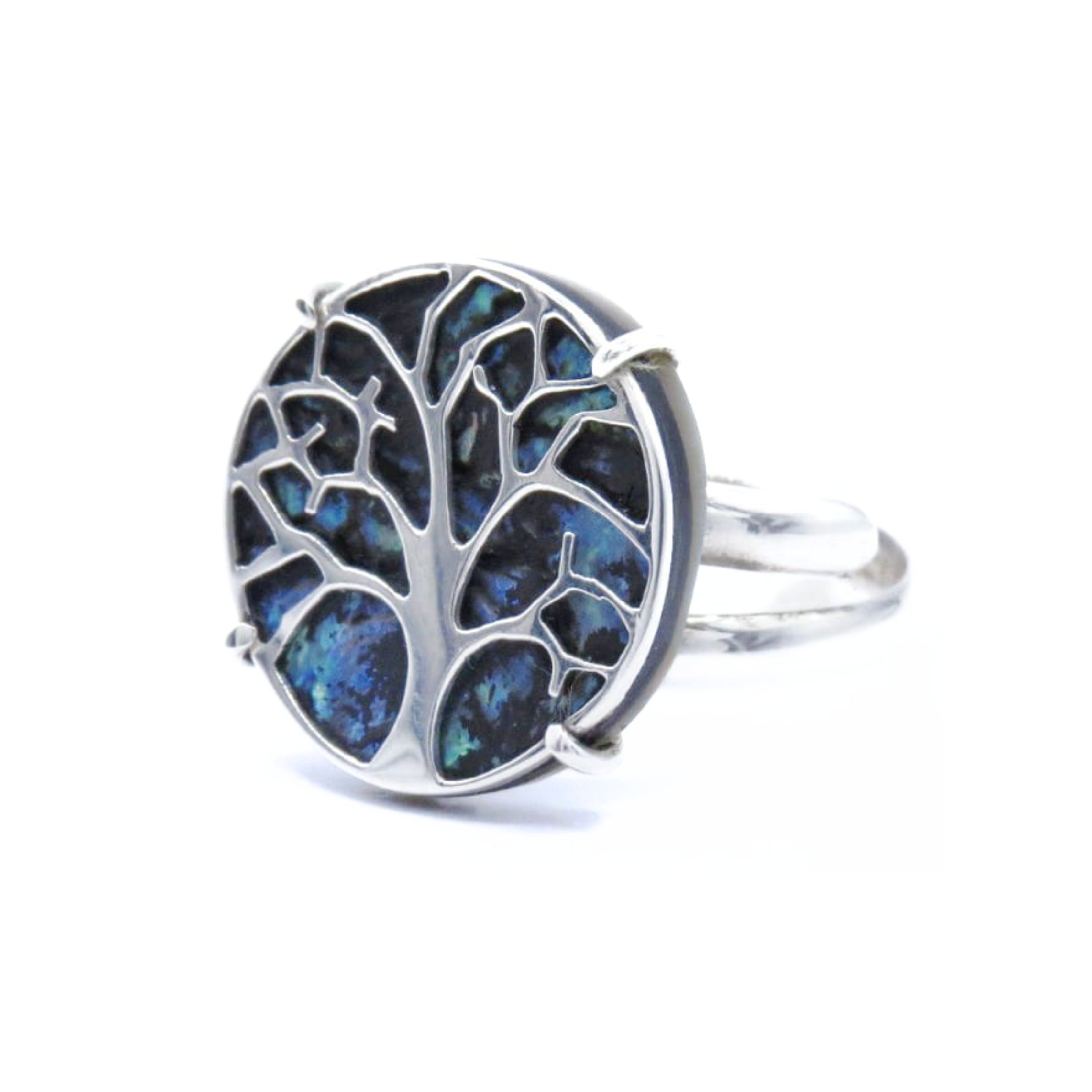Anillo ajustable Plata Primera Ley 0.925 Árbol de la vida/Concha de abulón. - Colección Árbol de la Vida– Anillos
