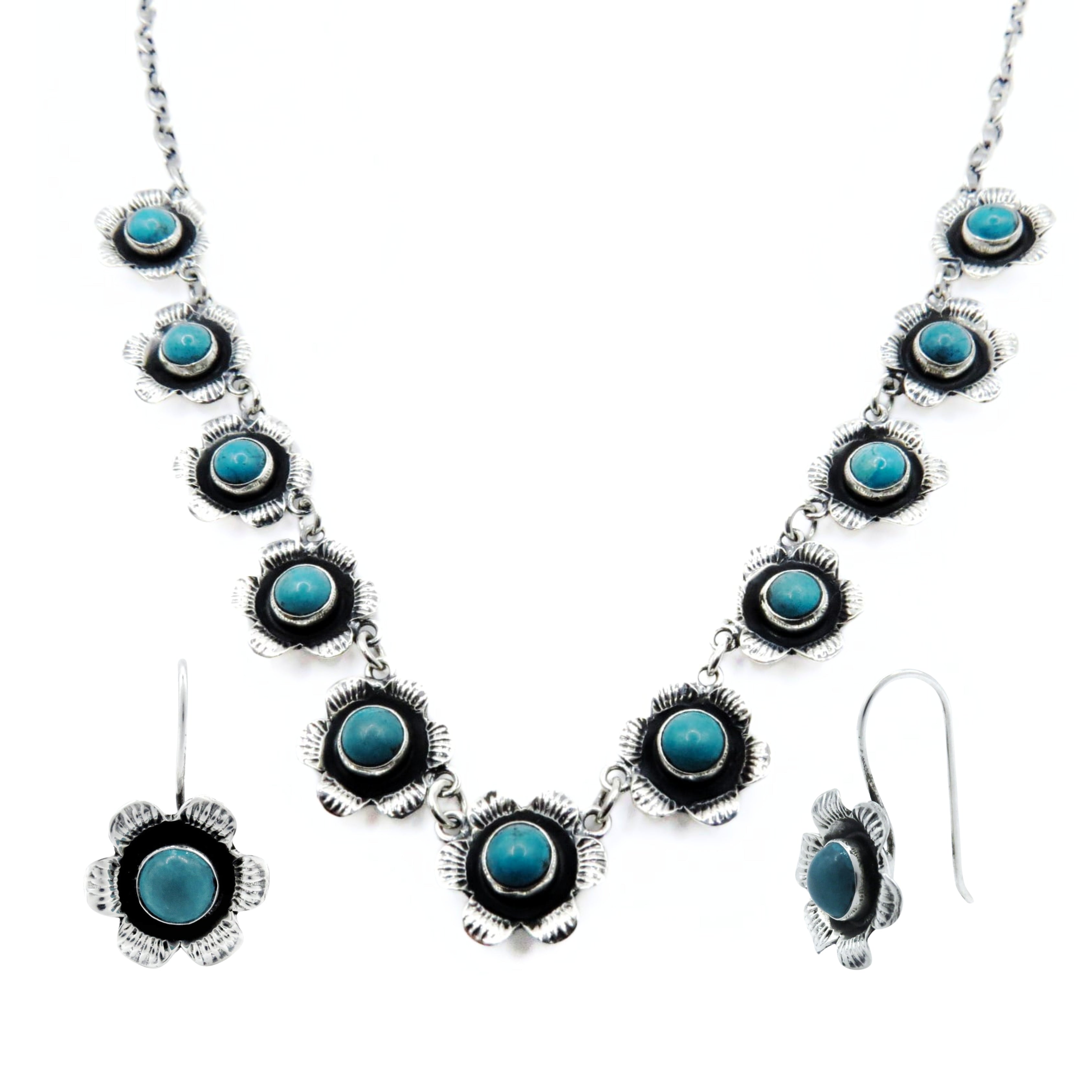 Collar y Aretes Plata Primera Ley 0.925 Flor de Cera/Turquezas - Colección Flor de Cera– Collar
